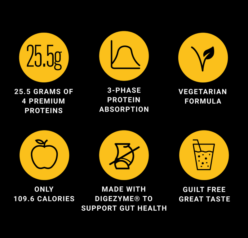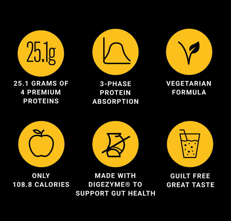 Amazing chocolate shake flavor with a great texture. And packed with 4 proteins for a slower release and bigger build. This is the only protein shake you need. Makes me feel great and satisfies my hunger. Awesome formula.”