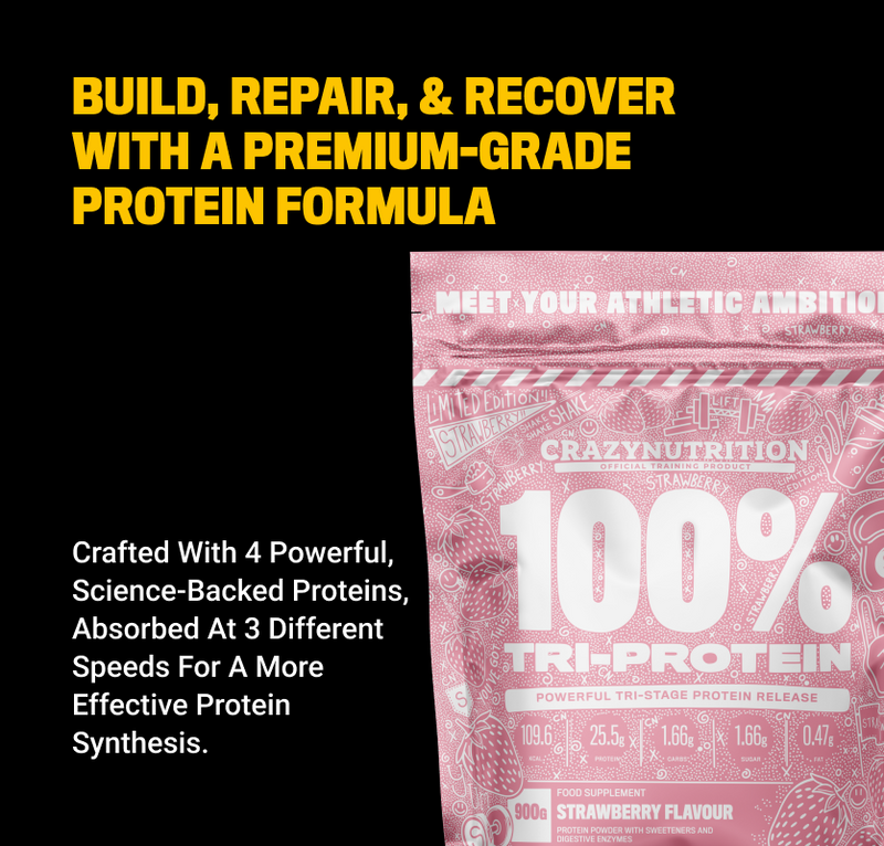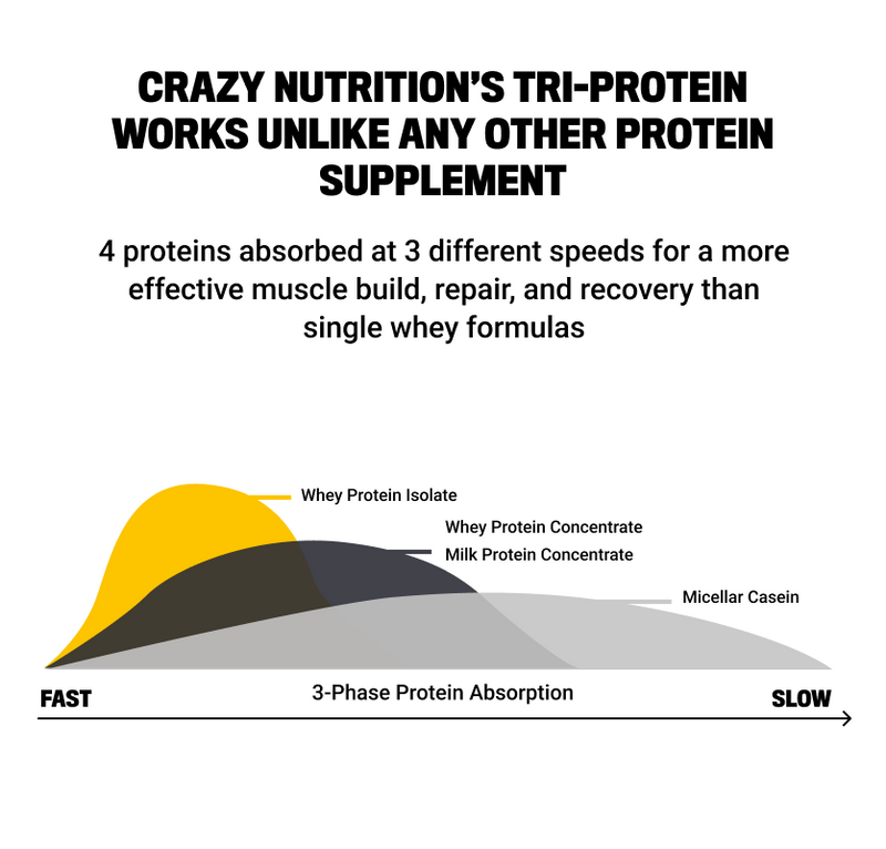 I’ve tried my fair share of protein supplements. If you can’t get all of your protein from your diet, then it’s ideal to supplement with the best— and TRI-PROTEIN from Crazy Nutrition wins hands down.